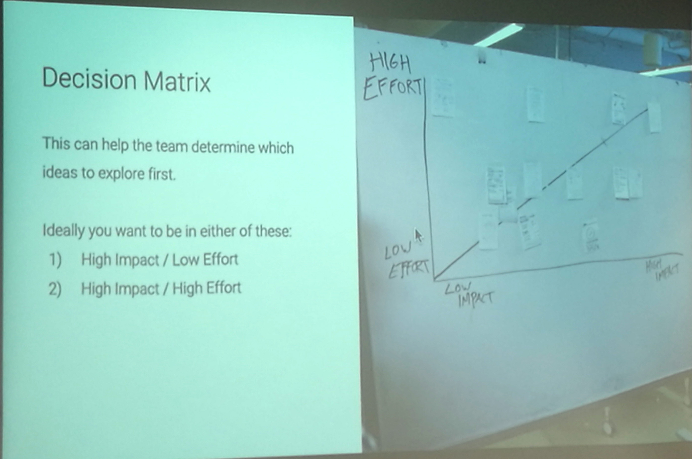 這個方法設(shè)計的很有邏輯性,針對一個難題先集合人找問題,不斷的提問題,然后從問題里面選出幾個最有價值的問題,然后再針對這個問題寫出自己的答案和方法,再選出最有價值的答案和方法,最后把它落實,畫出原型圖進(jìn)行用戶測試,估計再加上視覺設(shè)計,視覺設(shè)計的提案和投票,這就是一個產(chǎn)品的整個設(shè)計過程。