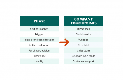 在下面的示例中,我們將基于 B2B 客戶的旅程來探索接觸點(diǎn)。