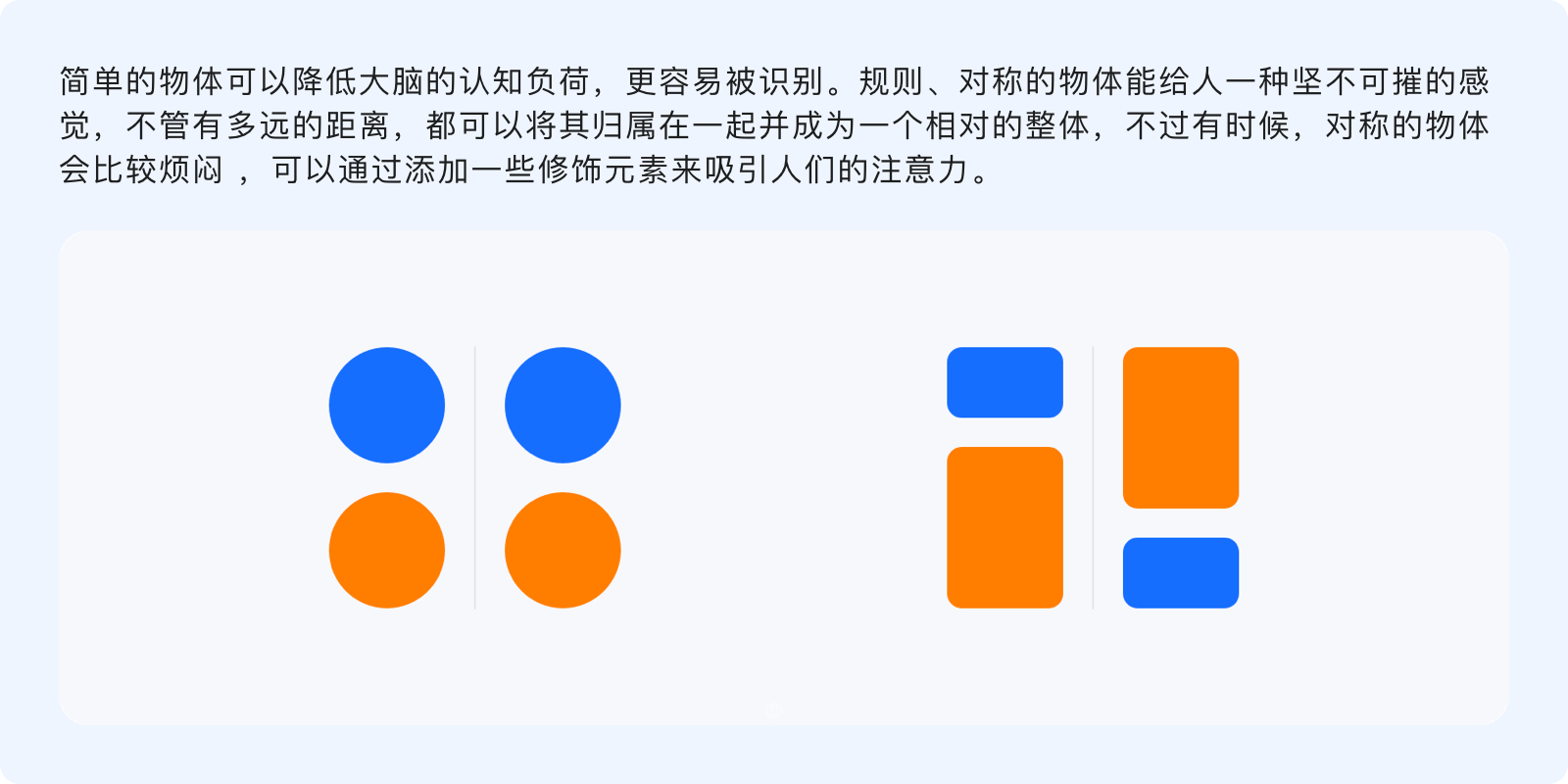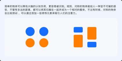 簡(jiǎn)單對(duì)稱性原則指出,人們?cè)谟^察事物的過程中第一印象更傾向于簡(jiǎn)單且對(duì)稱的物體,當(dāng)看到一個(gè)復(fù)雜的事物時(shí),神經(jīng)系統(tǒng)會(huì)潛意識(shí)地移除無關(guān)細(xì)節(jié)并簡(jiǎn)化它們,使其成為簡(jiǎn)單且統(tǒng)一的形狀。