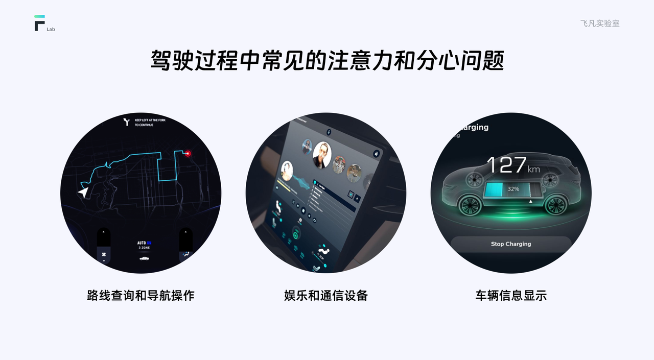 在駕駛過程中,有一些常見的注意力和分心問題需要我們關(guān)注和解決。路線查詢和導(dǎo)航操作:駕駛員需要查看導(dǎo)航系統(tǒng)、調(diào)整路線和尋找目的地等操作,這可能轉(zhuǎn)移駕駛員的注意力,導(dǎo)致駕駛員對(duì)道路情況的關(guān)注度下降。娛樂和通信設(shè)備:駕駛員使用娛樂系統(tǒng)或通信設(shè)備進(jìn)行音樂播放、電話通話或信息發(fā)送等操作,這會(huì)分散駕駛員的注意力,增加駕駛風(fēng)險(xiǎn)。車輛信息顯示:車輛上的信息顯示系統(tǒng)可能包含大量的信息,如車速、油耗、車輛故障等,駕駛員需要分散注意力去獲取和理解這些信息,這可能影響駕駛員對(duì)道路情況的感知和對(duì)緊急情況的反應(yīng)能力。了解駕駛員的注意力和分心因素對(duì)于優(yōu)化車載界面設(shè)計(jì)至關(guān)重要。那么我們?nèi)绾螏椭{駛員保持集中注意力,并減少分心情況的發(fā)生。