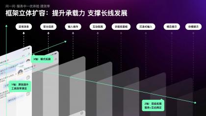 為實現(xiàn)這個目標,我們突破現(xiàn)有框架,創(chuàng)新制定了沿XYZ軸立體擴容的思路。在Y軸方向上,進行了屏效的優(yōu)化,滿足工具提效需求;沿Z軸拓展了層級,滿足多元服務(wù)和互動需求;最后,沿X軸探索第二空間,承載創(chuàng)新型體驗。