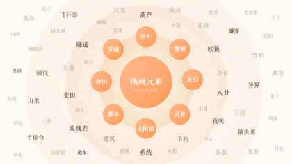 圖形的設(shè)計(jì)是最容易識別和產(chǎn)生共鳴的。在插畫元素的提煉上,為了能夠與小說網(wǎng)文氛圍結(jié)合的更緊密,我們以小說類型為劃分維度得出了一系列的具象的聯(lián)想關(guān)鍵詞。
