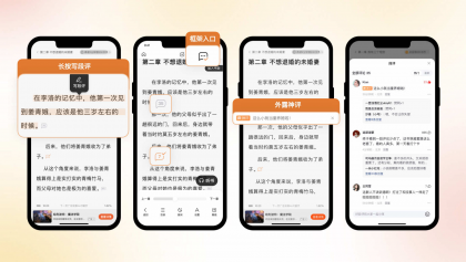 閱讀器場景是用戶使用時(shí)長最長的一個(gè)場景。因此我們?yōu)橛脩籼峁┝硕卧u功能,方便用戶閱讀過程中和書友進(jìn)行交流,為了不影響閱讀的流暢性,我們采用弱化的段評圖標(biāo)樣式和色彩,段評入口設(shè)計(jì)在段落尾部,減少對閱讀的干擾。