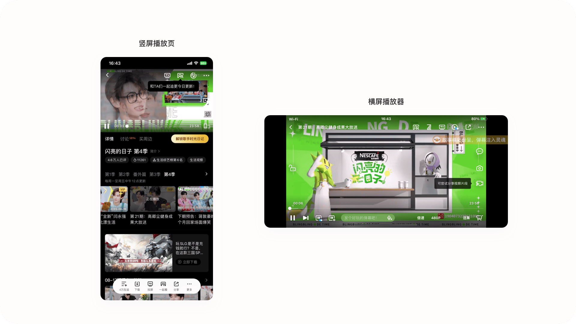 3.播放器相關(guān)播放器作為視頻產(chǎn)品的核心使用場(chǎng)景,其中的功能非常龐大,騰訊視頻的播放器內(nèi)容主要分為:豎屏播放頁(yè)與橫屏播放器