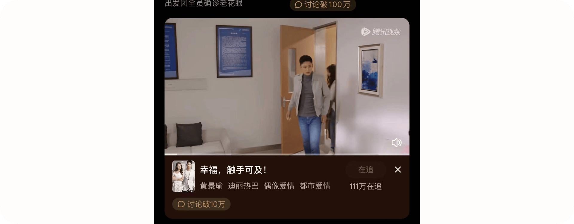 2.2.3產(chǎn)品亮點(diǎn):視頻大卡片推薦這種樣式的推薦形式雖然同屏下相比雙瀑布流的可推薦內(nèi)容少,但可以讓用戶更注重內(nèi)容視頻本身,推薦的視頻內(nèi)容都為該作品的熱門片段,小編經(jīng)??粗粗桶怖艘粋€(gè)新劇,很適合作為長(zhǎng)視頻推薦列表使用