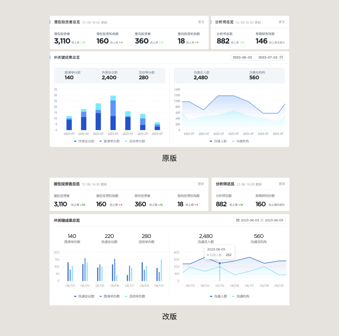 但重要不代表需要過度傾注和堆疊視覺元素,過度的設計會讓界面看起來有 “飛機” 敢,不僅不真實的印象產生了,還會顯得業(yè)余不夠自信。同時任何項目中表盤頁過度設計都會對整個項目造成負擔,后續(xù)的頁面要怎么設計才能不和它產生隔閡,保持一致性。
