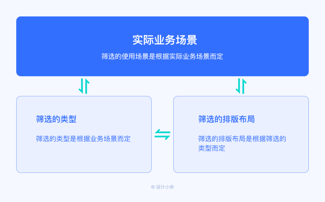 篩選的類型是根據(jù)業(yè)務(wù)場景而定,篩選的排版布局是根據(jù)篩選的類型而定,篩選的使用場景是根據(jù)實際業(yè)務(wù)場景而定,所以首先我們需要理解清楚真實的業(yè)務(wù)場景,再通過分析選擇適合的篩選類型,當已經(jīng)知道了篩選類型,我們只需要根據(jù)篩選的條件和頁面的交互及空間利用情況選擇合適的布局方式即可。