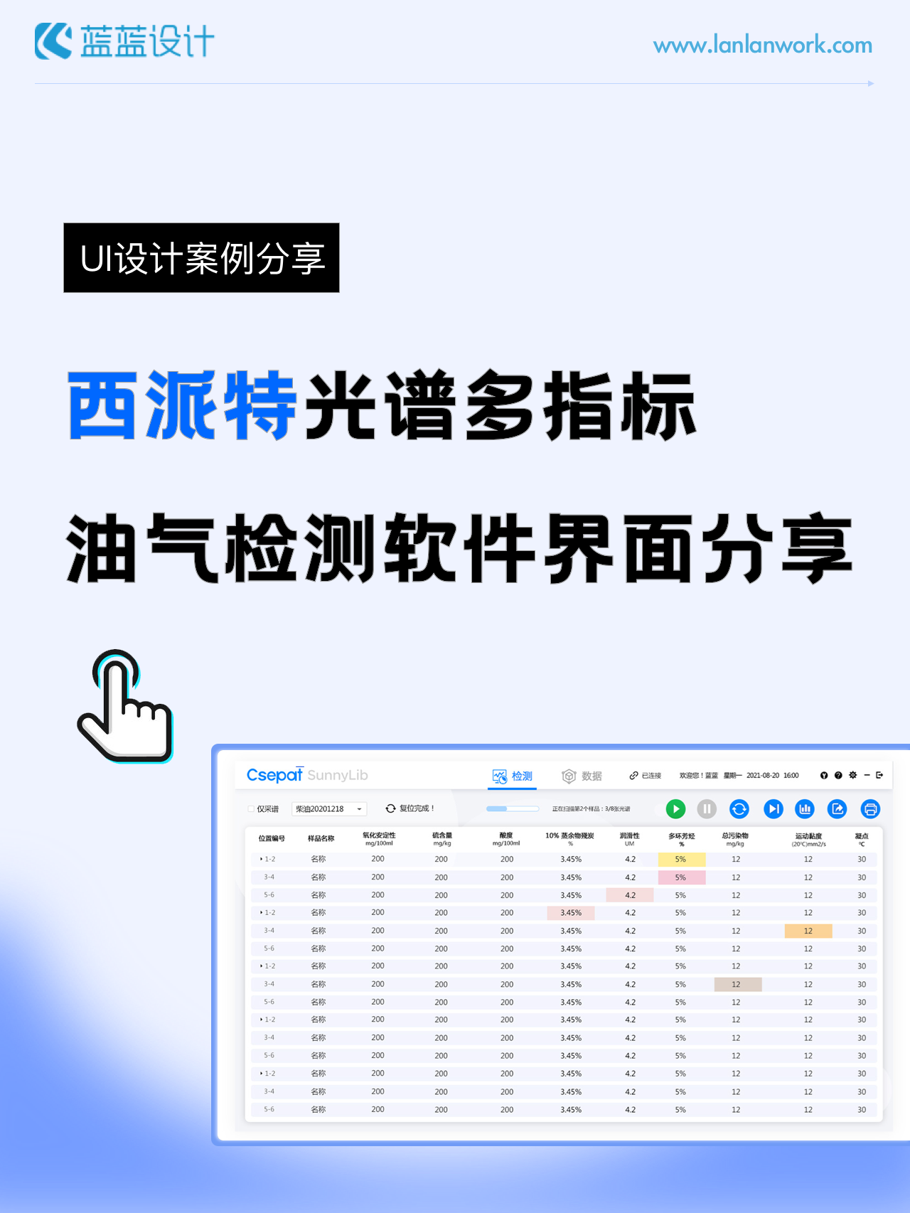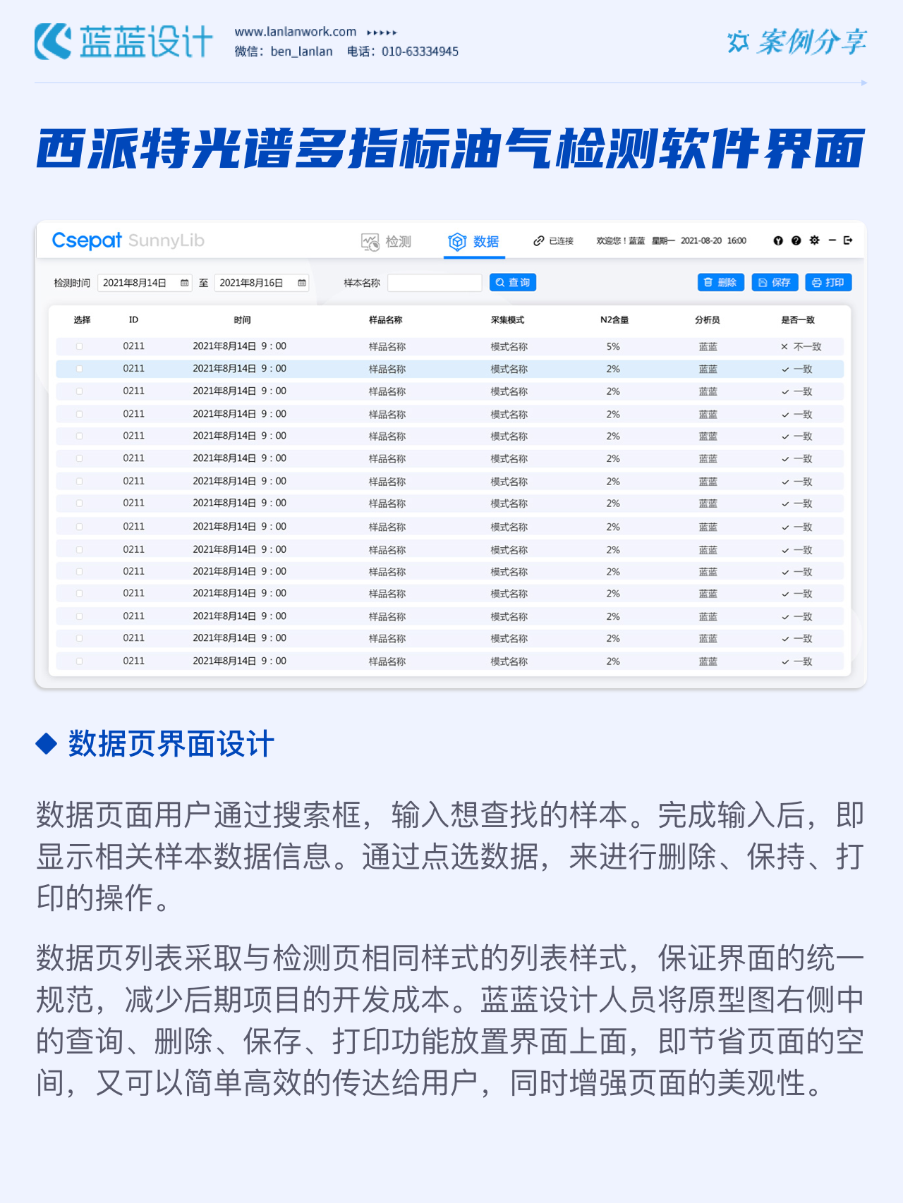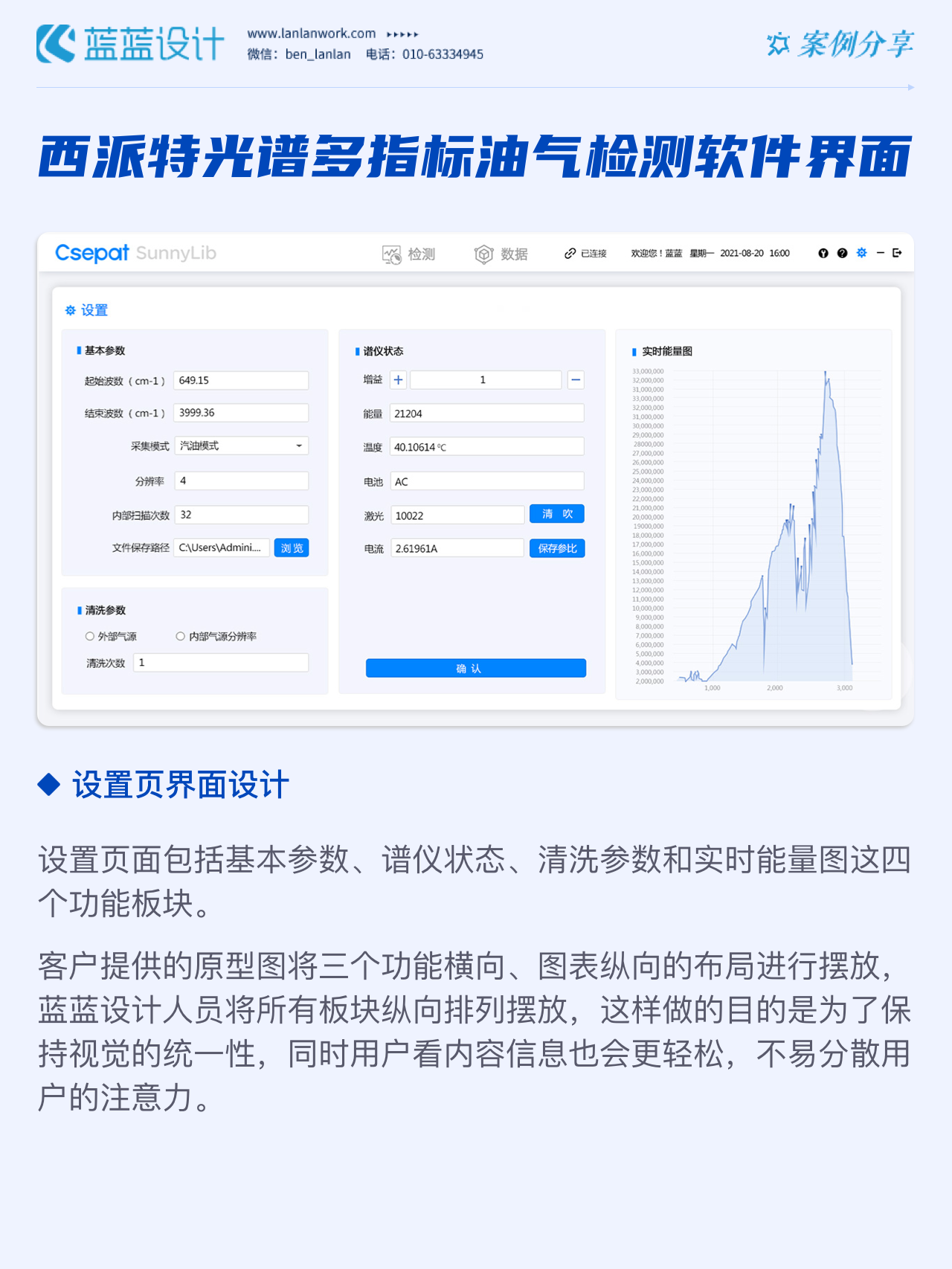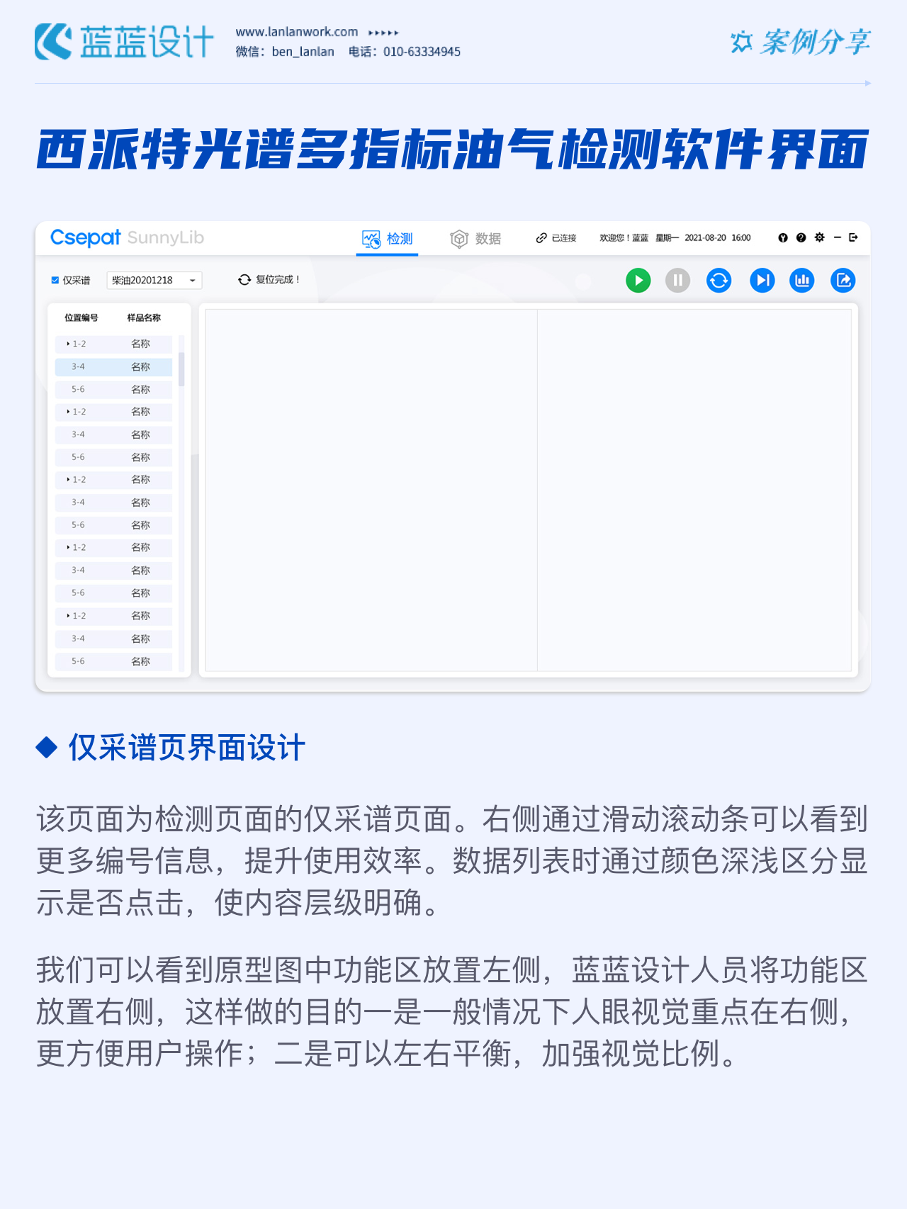 該軟件由北京西派特科技有限公司委托藍(lán)藍(lán)設(shè)計負(fù)責(zé)界面視覺設(shè)計、交互設(shè)計。藍(lán)藍(lán)設(shè)計人員通過前期詳細(xì)溝通,參考大量相關(guān)競品,為其提供四種方案視覺設(shè)計。最終雙方確定方案一設(shè)計風(fēng)格,后續(xù)根據(jù)客戶提供的原型圖及需求完成其他頁面設(shè)計。