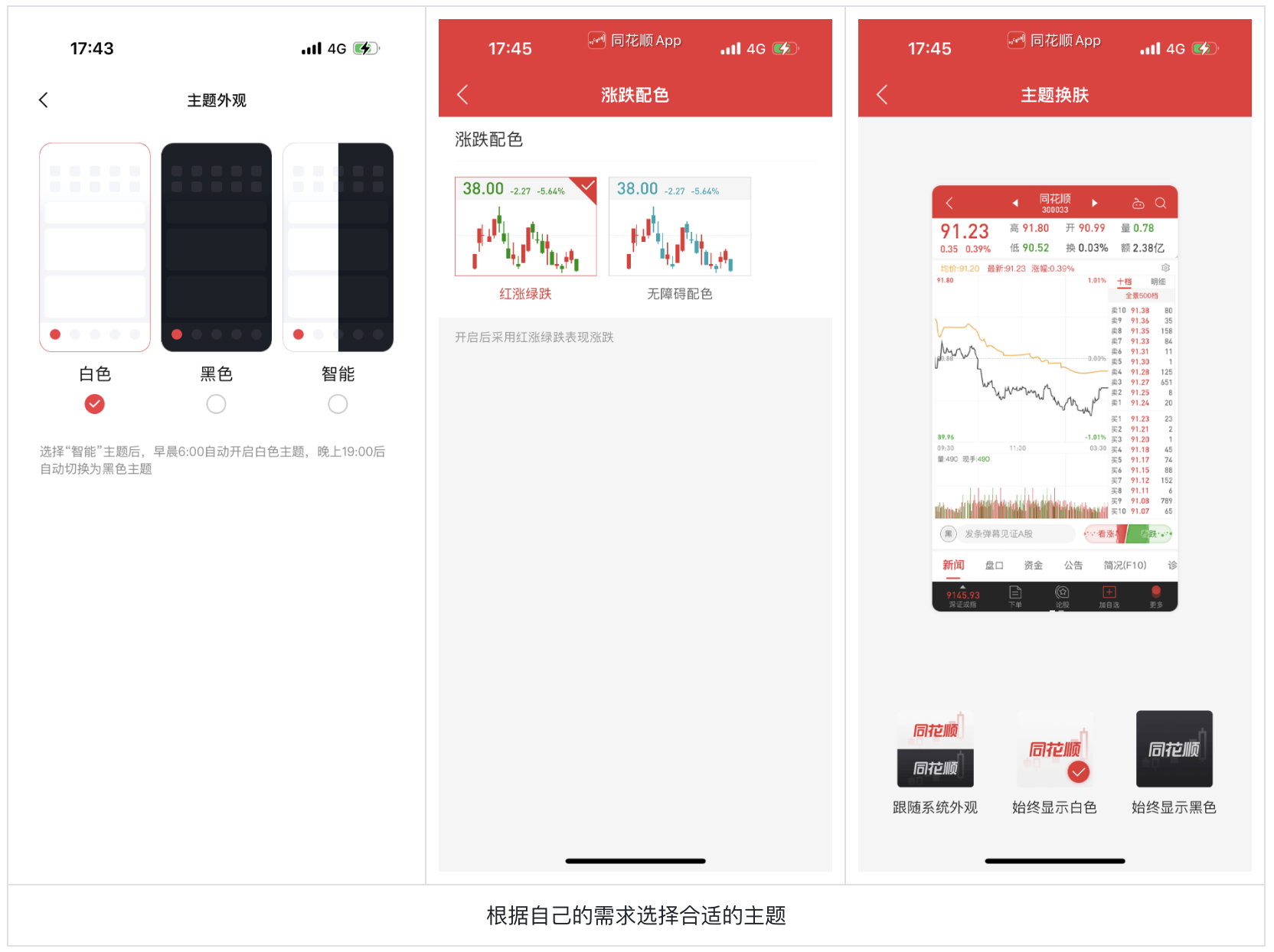 舉個(gè)例子,在個(gè)股詳情K線圖頁(yè)面,上漲用空心圖形表示,下跌用實(shí)心圖形表示,這種方法不僅幫助色盲用戶識(shí)別信息,還增加了視覺(jué)上的吸引力。