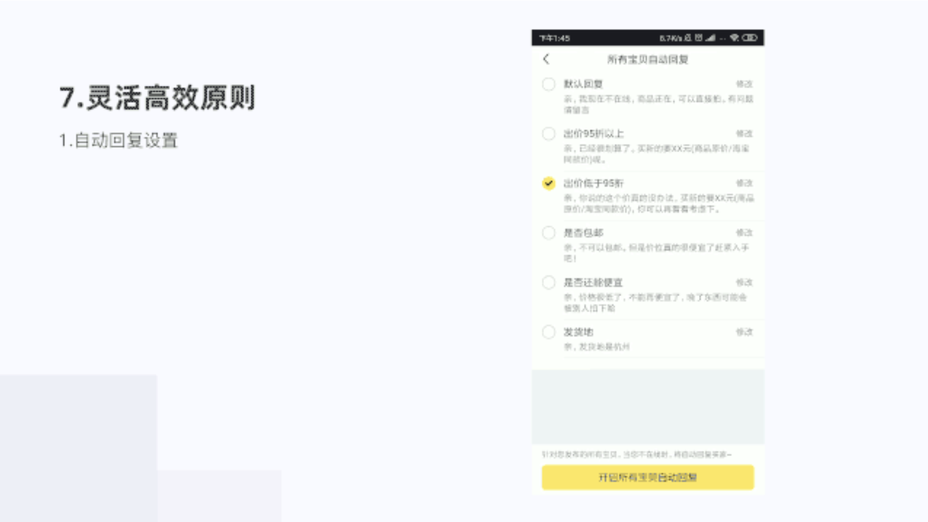 比較典型的靈活高效設置,用戶不在線直接自動回復,選擇不同回復語
