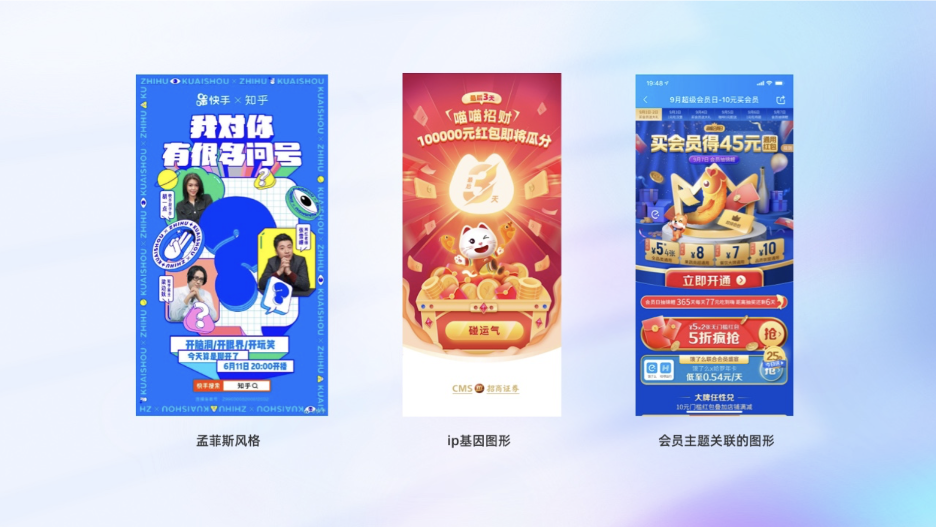 b、品牌、ip、logo基因圖形:品牌圖形、ip、logo是最具有產(chǎn)品視覺識別性的,從中提取品牌基因圖形,即簡單,又可以有效的與產(chǎn)品品牌掛鉤,抓住用戶心智塑造品牌認知。