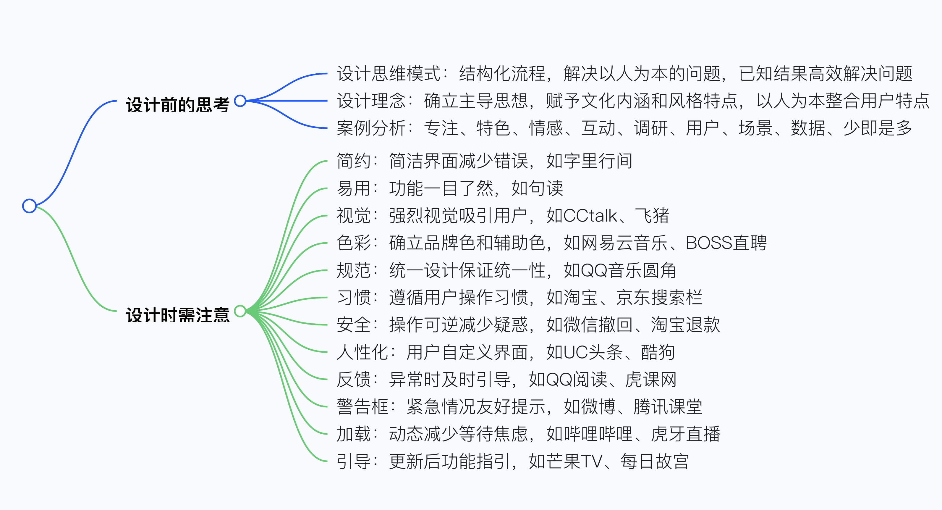 設(shè)計的最終目的是提高生活質(zhì)量,設(shè)計前需思考設(shè)計思維模式(結(jié)構(gòu)化解決以人為本的問題)、設(shè)計理念(以人為本確立主導(dǎo)思想),并進(jìn)行案例分析(如百度網(wǎng)盤專注功能、每日故宮突出特色等 9 點);設(shè)計時要注意簡約(減少認(rèn)知成本)、易用(功能一目了然)、視覺(抓住用戶眼球)等 12 點,涵蓋色彩、規(guī)范、習(xí)慣等方面,這些思考能提升設(shè)計效率與用戶體驗。