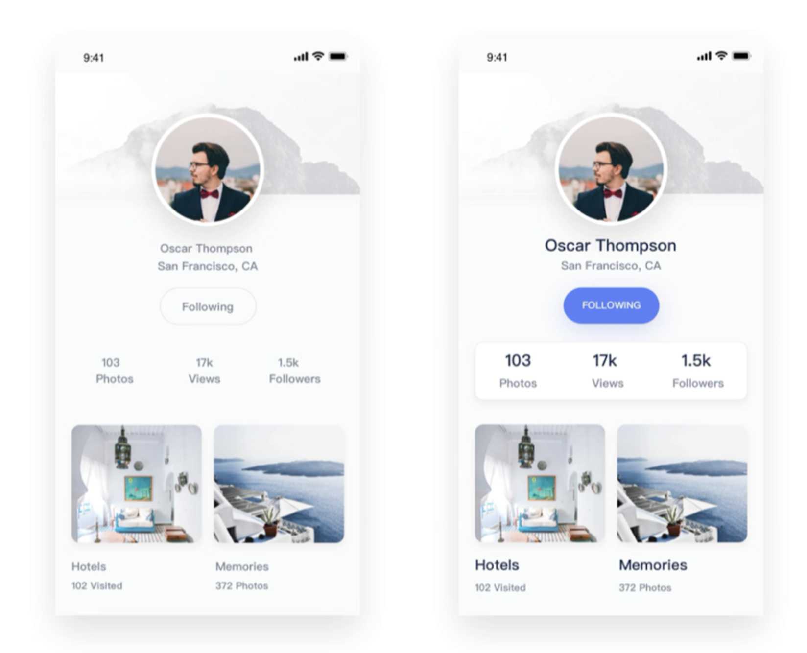 - 連續(xù)性:視覺偏向感知連續(xù)形式,元素共享明確界限區(qū)域則分一組,設(shè)計中常用卡片式組合相關(guān)元素。