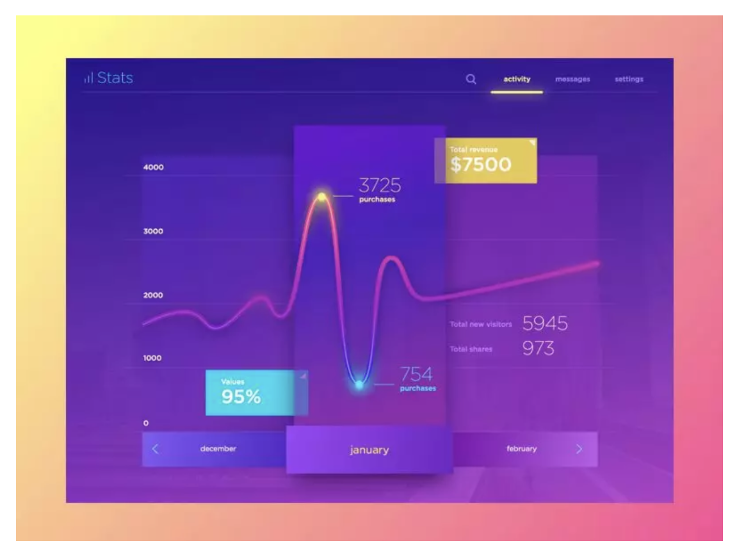 自 2018 年起,漸變成為一種新趨勢,在設(shè)計(jì)中更多地應(yīng)用漸變,能夠增強(qiáng)顏色的感染力。不過,很多設(shè)計(jì)曾傾向于避免使用漸變色,但現(xiàn)在漸變色的潛力越來越大,在設(shè)計(jì)中合理應(yīng)用,反而能為顏色選擇加分。