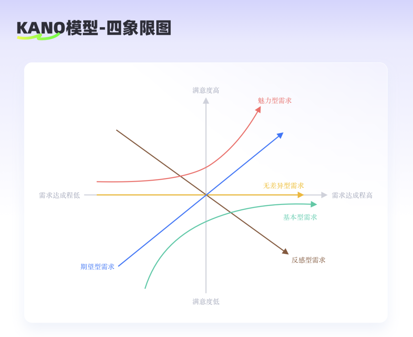 Kano 模型將用戶需求分為五類,其中和愉悅感直接相關(guān)的是前三種: