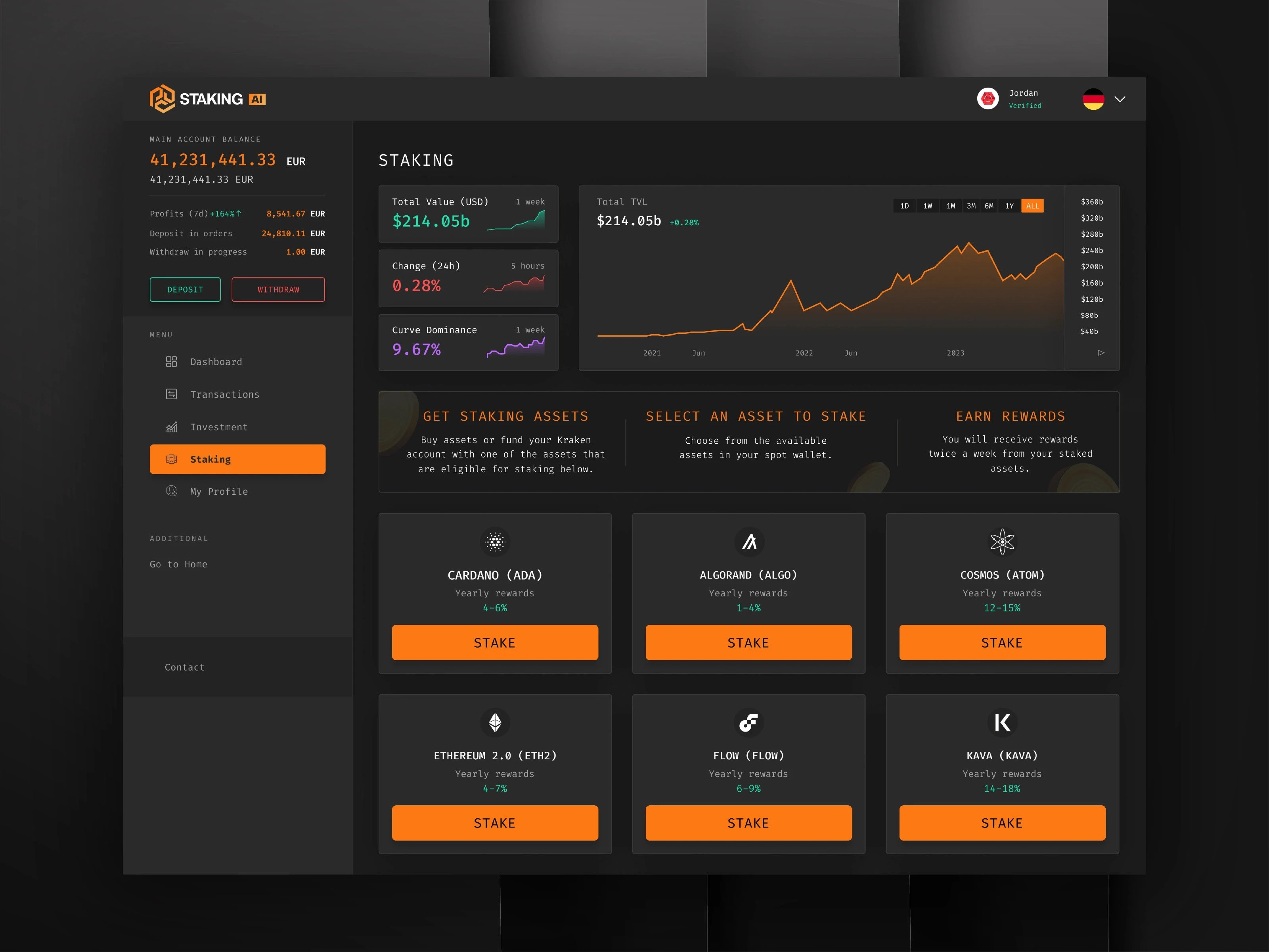 行業(yè)適配性:這種設(shè)計(jì)高度契合加密貨幣、金融投資類平臺的屬性,既通過深色風(fēng)格傳遞 “穩(wěn)重、可信” 的品牌形象,又以精準(zhǔn)的數(shù)據(jù)可視化和清晰的操作路徑,滿足投資者對 “資產(chǎn)透明化、操作便捷化” 的核心需求,是金融科技領(lǐng)域界面設(shè)計(jì)的優(yōu)質(zhì)范例。