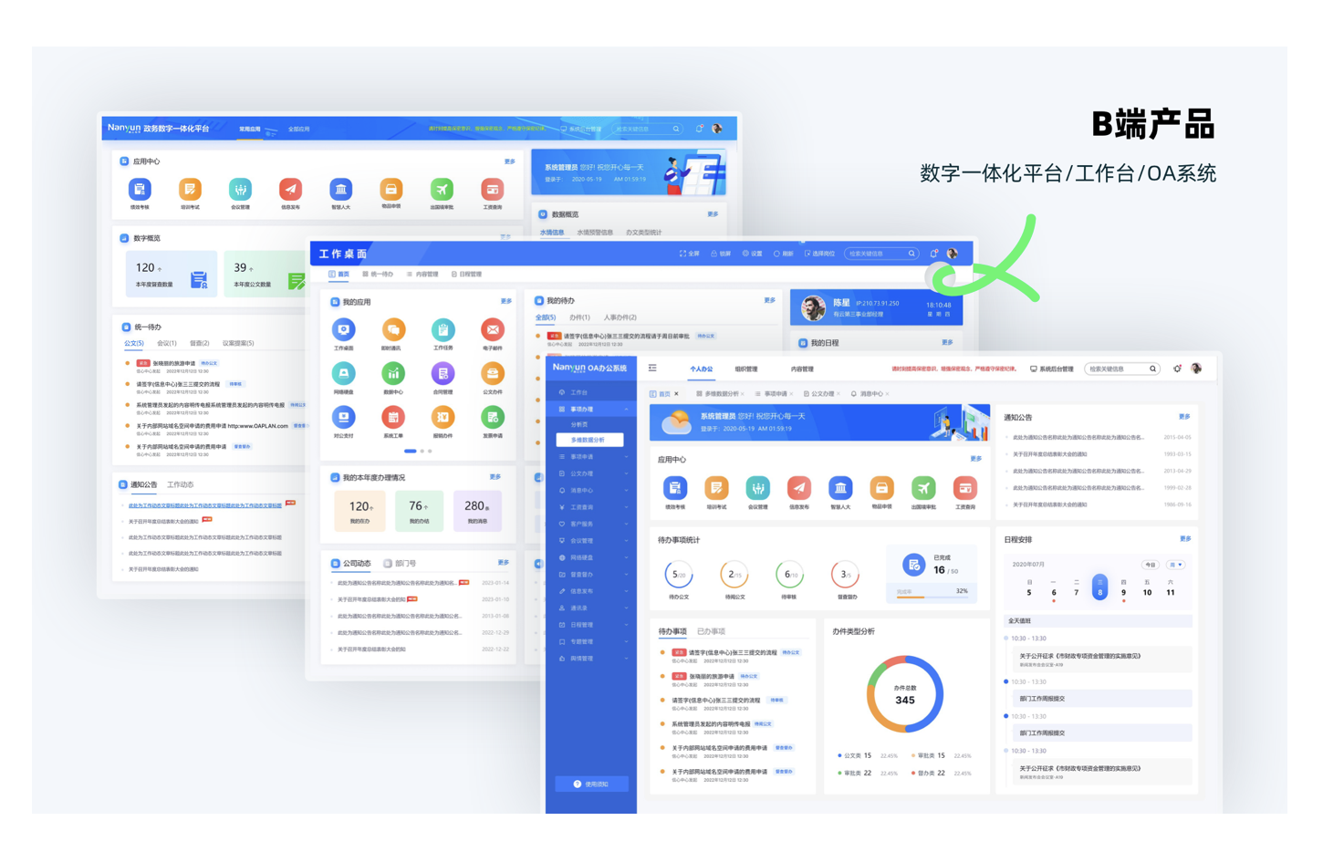 - B 端 UI 設(shè)計:全稱 “To Business”,服務(wù)于企業(yè)或組織用戶,核心是滿足商業(yè)流程需求。比如 OA 辦公系統(tǒng)、財務(wù)軟件、數(shù)據(jù)監(jiān)管平臺等,設(shè)計目標(biāo)是幫企業(yè)優(yōu)化流程、降低成本、提升生產(chǎn)力。