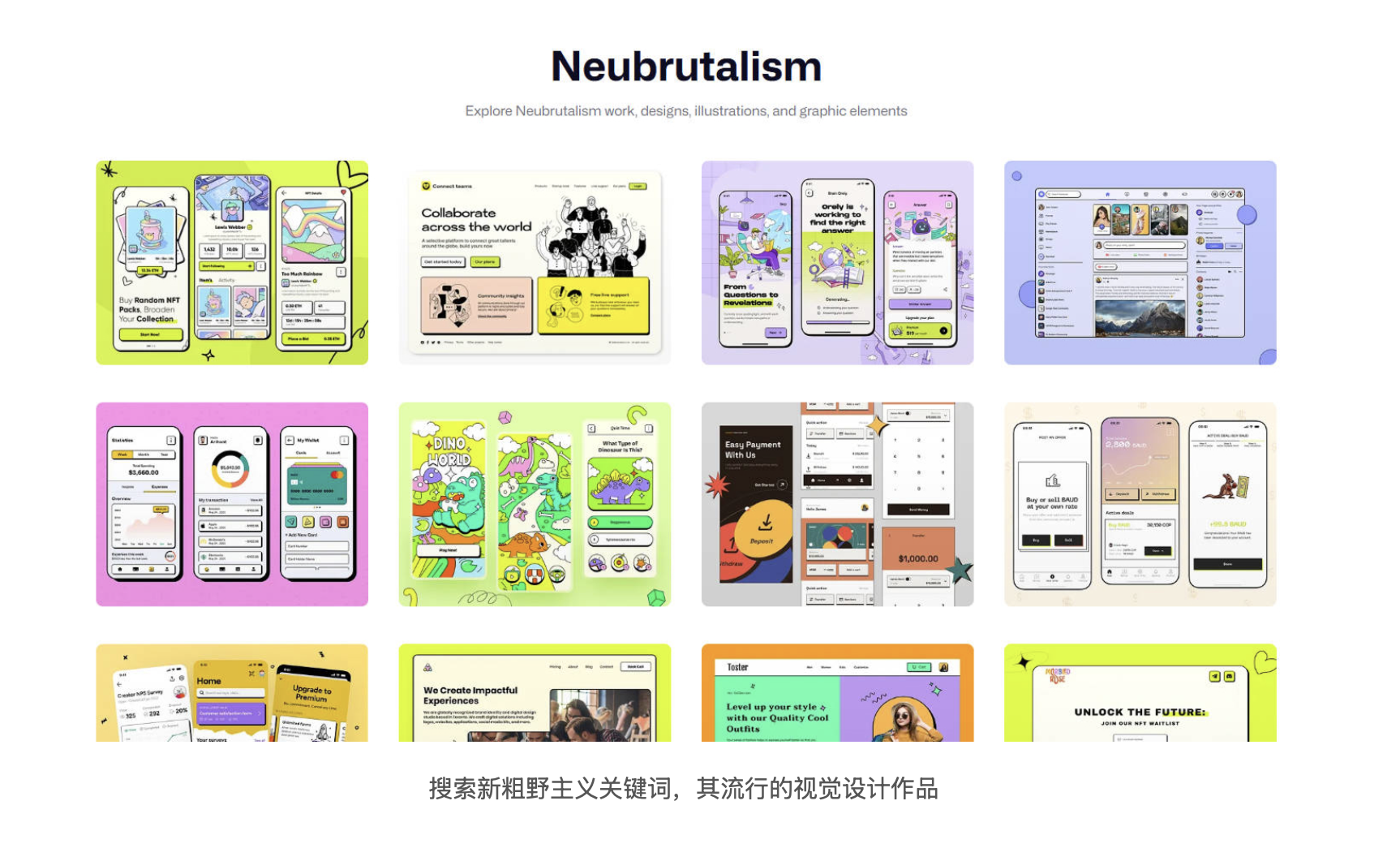 作為數(shù)字設(shè)計(jì)領(lǐng)域的 "叛逆者",新粗野主義的風(fēng)格特點(diǎn)極具辨識(shí)度。在視覺(jué)呈現(xiàn)上,它追求極致的直接性:字體往往選擇粗黑、夸張的樣式,成為畫(huà)面的視覺(jué)核心;插圖和動(dòng)畫(huà)多采用強(qiáng)烈的視覺(jué)化風(fēng)格,主題多元且充滿張力;界面設(shè)計(jì)摒棄冗余信息,以最直白的方式呈現(xiàn)核心功能,哪怕?tīng)奚糠?"易用性",也要堅(jiān)守 "功能大于形式" 的原則。這種 "反 UX" 的交互體驗(yàn),看似違背設(shè)計(jì)常理,實(shí)則是對(duì)過(guò)度設(shè)計(jì)的反叛 —— 它拒絕用精致包裝掩蓋本質(zhì),讓設(shè)計(jì)回歸最原始的溝通功能。