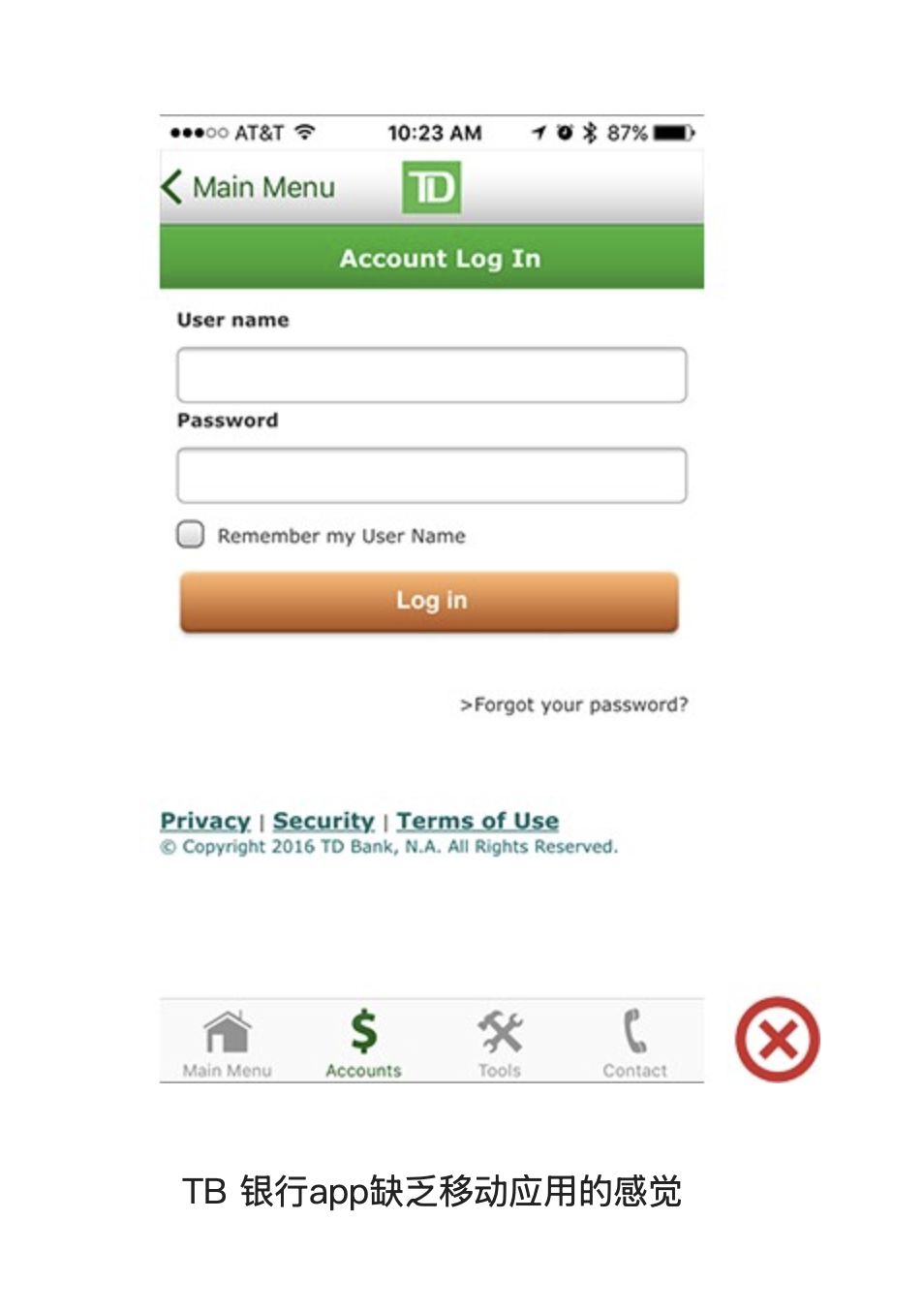 網(wǎng)頁端的交互模式與頁面元素,并不完全適用于移動 App。網(wǎng)頁中常用下劃線表示超鏈接,但在移動應(yīng)用中,用戶更習慣通過按鈕完成跳轉(zhuǎn),下劃線設(shè)計會顯得突兀且不符合使用預期。曾有某銀行的 iOS 端 App,直接將網(wǎng)頁代碼包裝成應(yīng)用,界面中保留了網(wǎng)頁式的下劃線鏈接和底部版權(quán)信息,讓用戶誤以為打開的是移動網(wǎng)頁,而非原生 App,嚴重影響了產(chǎn)品的專業(yè)性與使用體驗。