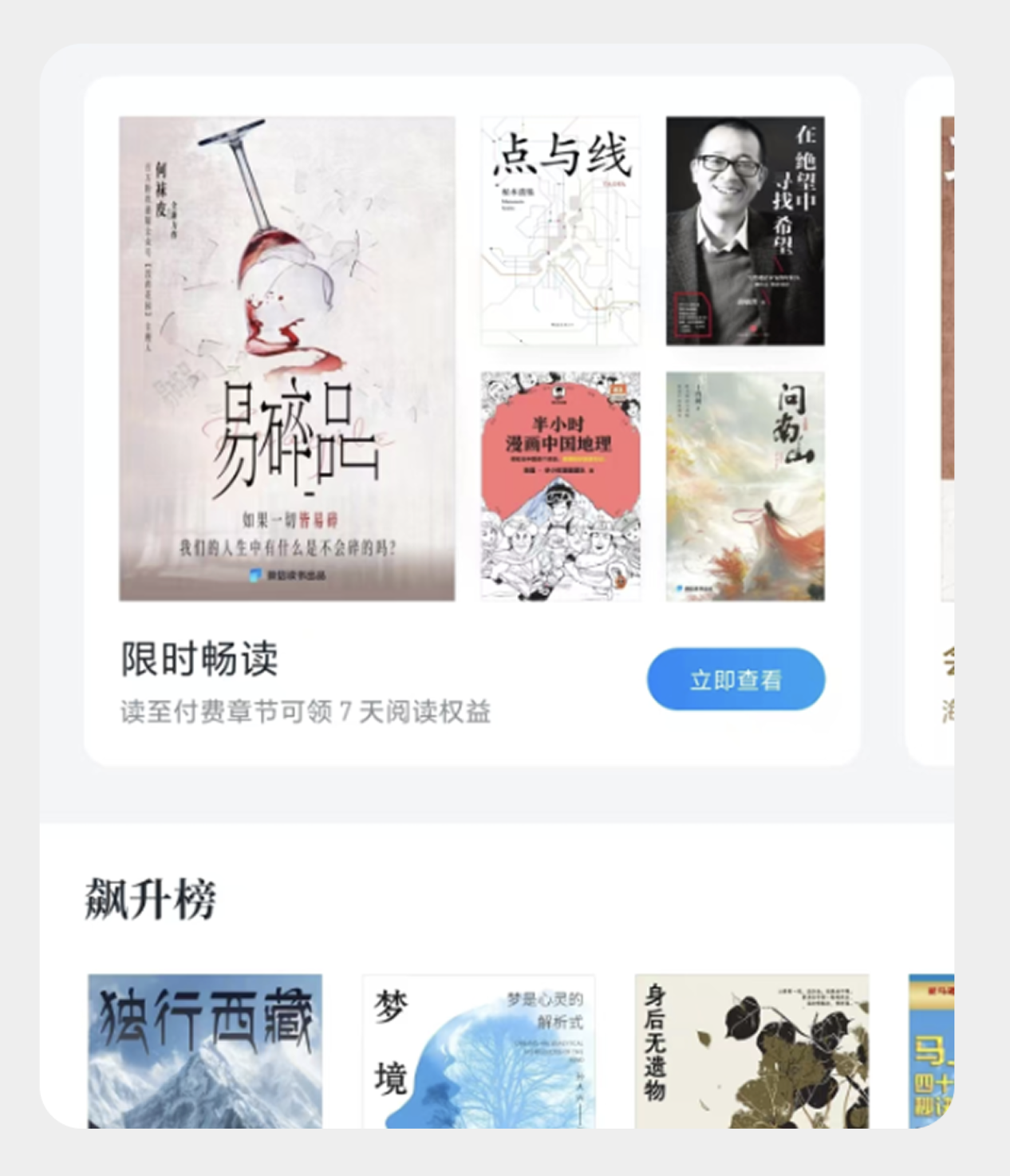 比如電商的商品卡片、旅游 APP 的風(fēng)景圖卡片、閱讀平臺(tái)的圖書推薦卡,圖片占比最大,搭配簡短的標(biāo)題、價(jià)格、亮點(diǎn)標(biāo)簽,輔助提升轉(zhuǎn)化意愿。