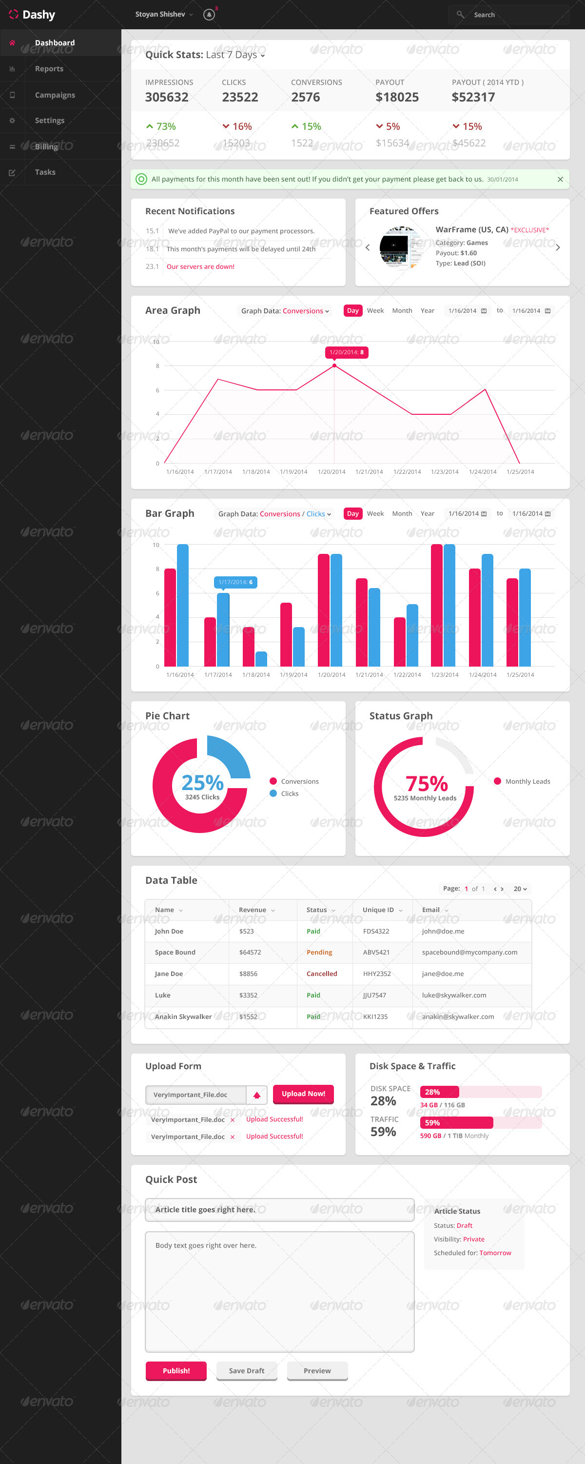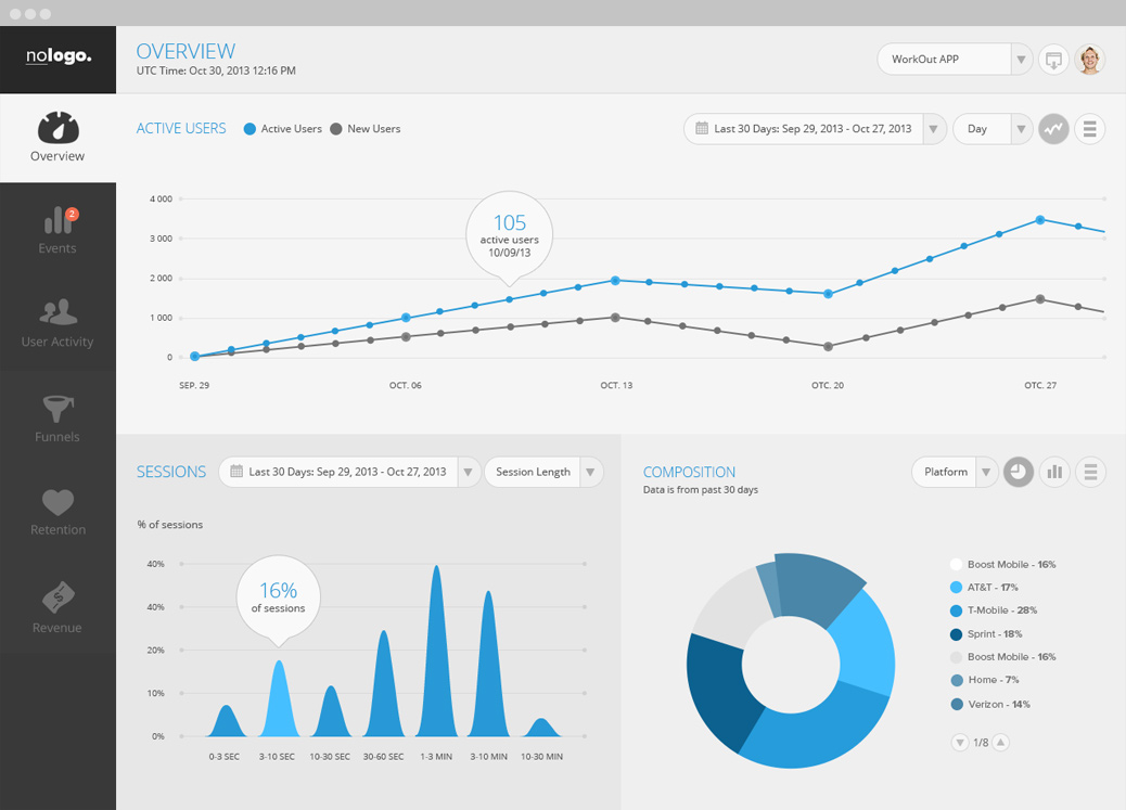 藍(lán)藍(lán)設(shè)計(jì)是一家專注而深入的設(shè)計(jì)公司,致力于提供有效、經(jīng)典卓越的設(shè)計(jì),在工作中,目前有很多客戶選擇購買了Bootstrap ui的框架,客戶們選擇Bootstrap的原因是因?yàn)樗目蚣苤性S多組件已經(jīng)寫好,js等很方便直接引用,程序員們只需直接用就可以,可以把工作的重心放在后臺程序的開發(fā)上。但是Bootstrap ui只是提供了各種元素,無法直接使用,需要進(jìn)行二次設(shè)計(jì)和開發(fā)。藍(lán)藍(lán)設(shè)計(jì)做了許多這樣的工作,包括整合客戶的業(yè)務(wù)和需求重新設(shè)計(jì)頁面的風(fēng)格和布局,最后切圖修改Bootstrap ui的css,這里是我們工作前收集的國外各種風(fēng)格扁平化后臺管理界面,做成系列欣賞,與大家分享~~~~