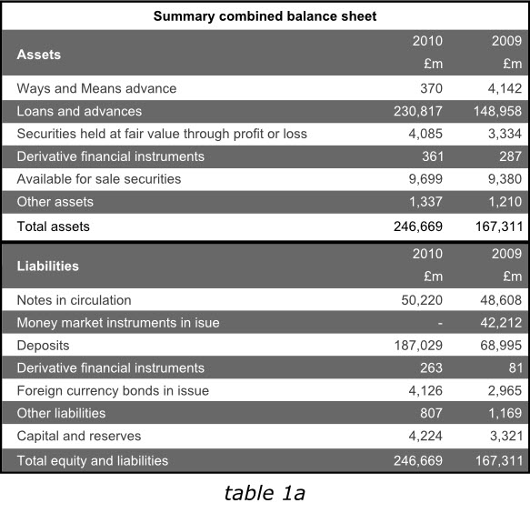 在英格蘭銀行2010年度報(bào)告中,盡管我們不能通過改變數(shù)據(jù)來達(dá)到讀者的期望,但是在其他同樣的報(bào)告中,我們在末尾增加一列有用的數(shù)據(jù),以避免用戶在比較各年度數(shù)據(jù)的時(shí)候,還需要自行計(jì)算增長或減少的幅度。下面第一個(gè)表格6a已經(jīng)增加了總資產(chǎn)和總負(fù)債數(shù)據(jù),而表格6b則在右側(cè)增加了新的一列,使我們更容易分析出哪些領(lǐng)域的經(jīng)營成果發(fā)生了實(shí)質(zhì)性變動(dòng)。