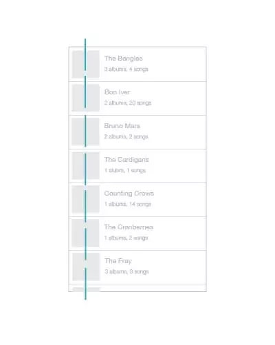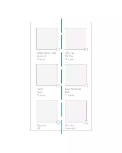 軸最常見于對稱元素的使用,當元素被布置成軸對稱的布局的時候,會給人有序感。就像生活中絕大多數(shù)的事情一樣,我們更傾向于享受有序的的東西,它們令人感覺平穩(wěn)、舒適、平易近人。最簡單的一個例子就是iTunes 程序中的專輯列表的設計,所有的專輯列表在界面的左側保持對齊,圍繞虛線軸軸對稱。