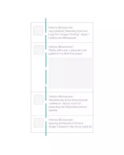 從產(chǎn)品設計的角度上來看,Twitter 的時間線設計就是一個很好的案例,左側的頭像和右側的推文共同塑造出縫隙中軸線的感覺。