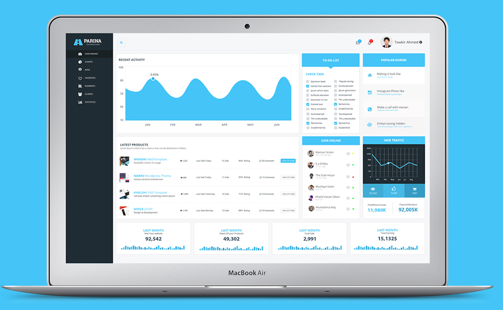 后臺管理軟件界面設(shè)計一:藍(lán)色經(jīng)典的扁平風(fēng)格。