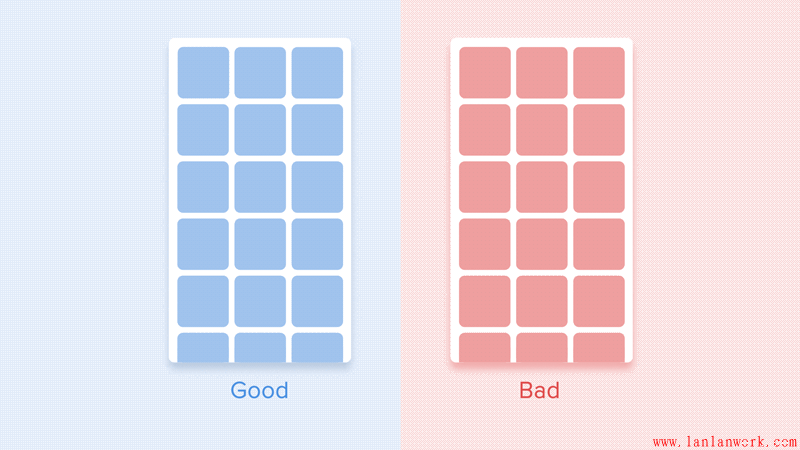 列表項(xiàng)的出現(xiàn)應(yīng)該只允許有一個(gè)短暫的延遲。每一個(gè)新列表項(xiàng)的出現(xiàn)間隔應(yīng)該在20-25ms之間。元素出現(xiàn)太慢的話,會(huì)讓用戶感到很不爽。