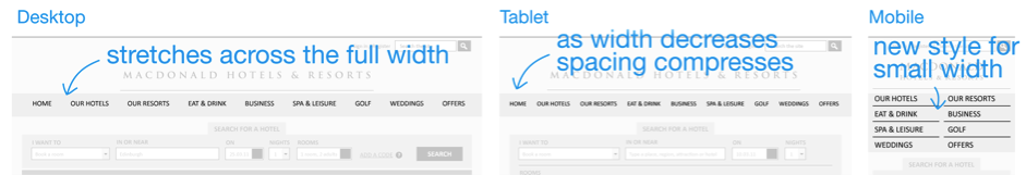 我們將使用一個真實(shí)的酒店網(wǎng)站 作為范例,來演示響應(yīng)式Web設(shè)計(jì)的流程。這個網(wǎng)站是我們在九月份剛剛為Macdonald連鎖酒店創(chuàng)建的。在整個設(shè)計(jì)開發(fā)流程中,有幾個關(guān)鍵步驟,是我們接下來要逐一展開學(xué)習(xí)的: