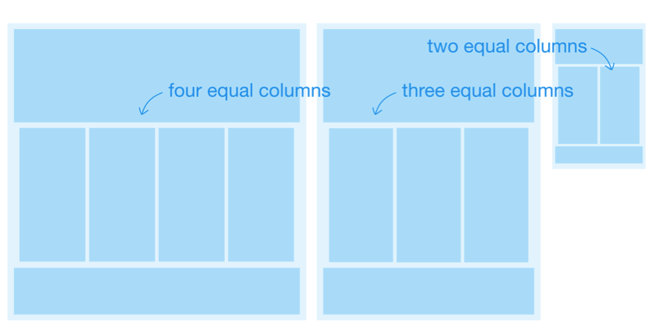 如上圖所示,從每列等寬的情況入手,可以讓規(guī)劃工作相對簡單一些,幫助我們將注意力放在響應(yīng)式的布局改變上。