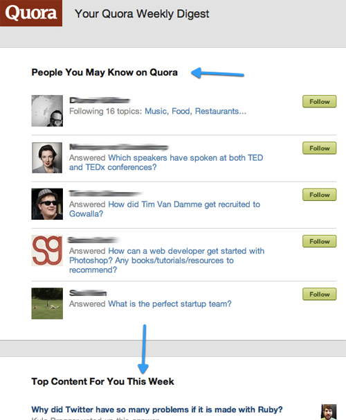 Quora會在郵件當(dāng)中向用戶推薦他可能感興趣的內(nèi)容。如果你的網(wǎng)站或應(yīng)用有足夠的數(shù)據(jù)來支持這樣的個性化服務(wù),那么就考慮一下吧。