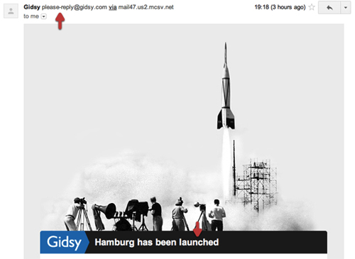 同樣是一幅與其站點風(fēng)格相一致的復(fù)古照片。另外,注意到他們用來發(fā)送郵件的郵箱名稱沒?與常見的做法不同,Gidsy在這里使用了"please-reply",以此向用戶表達(dá)自己樂于傾聽意見的姿態(tài)。