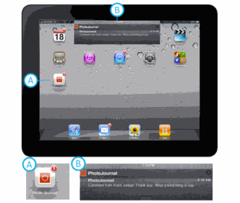 下圖所示的是相片日志應(yīng)用推送過來的評(píng)論提示: