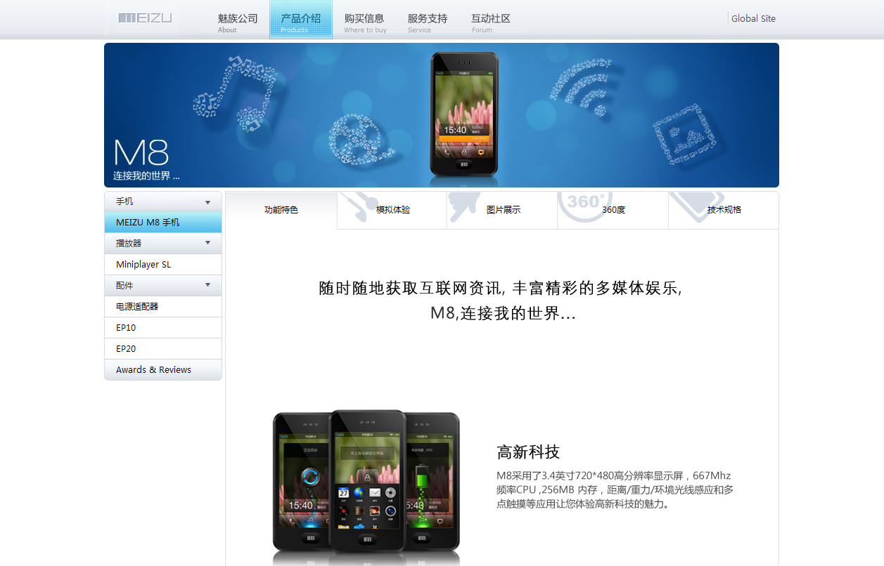 4 魅族公司官網(wǎng),也是藍(lán)藍(lán)個(gè)人非常喜歡的風(fēng)格,格局大方,恢宏穩(wěn)重,沒(méi)有多余的東西,極簡(jiǎn)單而條理清晰,重點(diǎn)的圖設(shè)計(jì)精致、表達(dá)需求明確,而且唯美,大量空白顯的頁(yè)面不擁擠,有想象的空間。