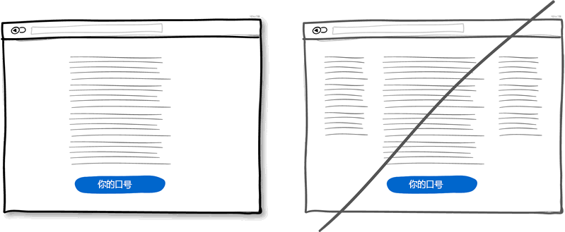單列布局能夠讓對(duì)全局有更好的掌控。同時(shí)用戶(hù)也可以一目了然內(nèi)容。而多列而已則會(huì)有分散用戶(hù)注意力的風(fēng)險(xiǎn)使你的主旨無(wú)法很好表達(dá)。最好的做法是用一個(gè)有邏輯的敘述來(lái)引導(dǎo)用戶(hù)并且在文末給出你的操作按鈕。