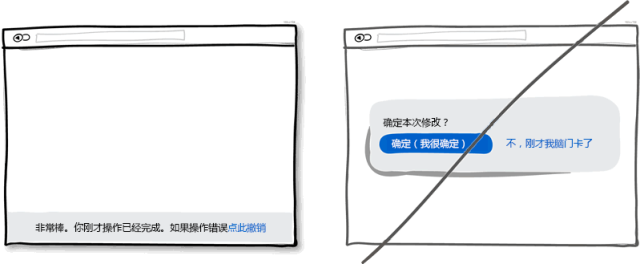 假設(shè)你剛點(diǎn)擊了一個(gè)連接或者按鈕,撤銷(xiāo)操作可以讓操作流暢自然,這也符合人類(lèi)的本能。而每次操作都彈一個(gè)確定框則好像是在質(zhì)問(wèn)用戶(hù)你明白不明白這個(gè)操作會(huì)產(chǎn)生什么后果。我還是更習(xí)慣假設(shè)用戶(hù)每次操作都是正確的,其實(shí)只有極少數(shù)情況下才會(huì)發(fā)生誤操作。所以,為了防止誤操作而設(shè)計(jì)的確認(rèn)窗口其實(shí)是不人性化的,用戶(hù)每次操作都需要進(jìn)行毫無(wú)意義的確定。所以請(qǐng)考慮在你的產(chǎn)品里實(shí)現(xiàn)撤銷(xiāo)操作來(lái)增加用戶(hù)的操作友好度吧。