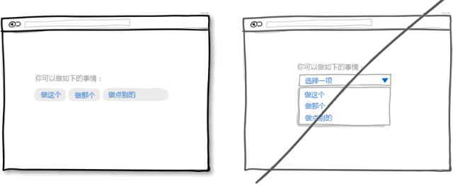 你使用的任何一個(gè)下拉框都會(huì)對(duì)用戶(hù)造成信息的隱藏而需要額外的操作才能顯示。如果這些信息是貫穿整個(gè)操作所必需的,那你最好把它展示出來(lái)做得更顯而易見(jiàn)一點(diǎn)。下拉框最好用在選擇日期,省份等約定俗成的地方。對(duì)于程序中重要的選項(xiàng)最好還是不要做成下拉形式。