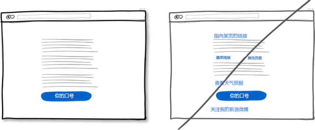 為了滿(mǎn)足各式用戶(hù)的需求,在頁(yè)面上放些鏈接鏈到這里鏈到那里是常見(jiàn)的做法。如果你的主要目的是想讓用戶(hù)點(diǎn)擊頁(yè)面最后那個(gè)下載按扭什么的話(huà),就需要三思了。因?yàn)橛脩?hù)可能點(diǎn)擊了其他鏈接離開(kāi)頁(yè)面了。所以你需要注意頁(yè)面的鏈接數(shù)量,最好將用于導(dǎo)航與用于操作的鏈接用樣式區(qū)分開(kāi)。盡量移除頁(yè)面不需要的鏈接會(huì)讓用戶(hù)點(diǎn)擊到你的功能按鈕。