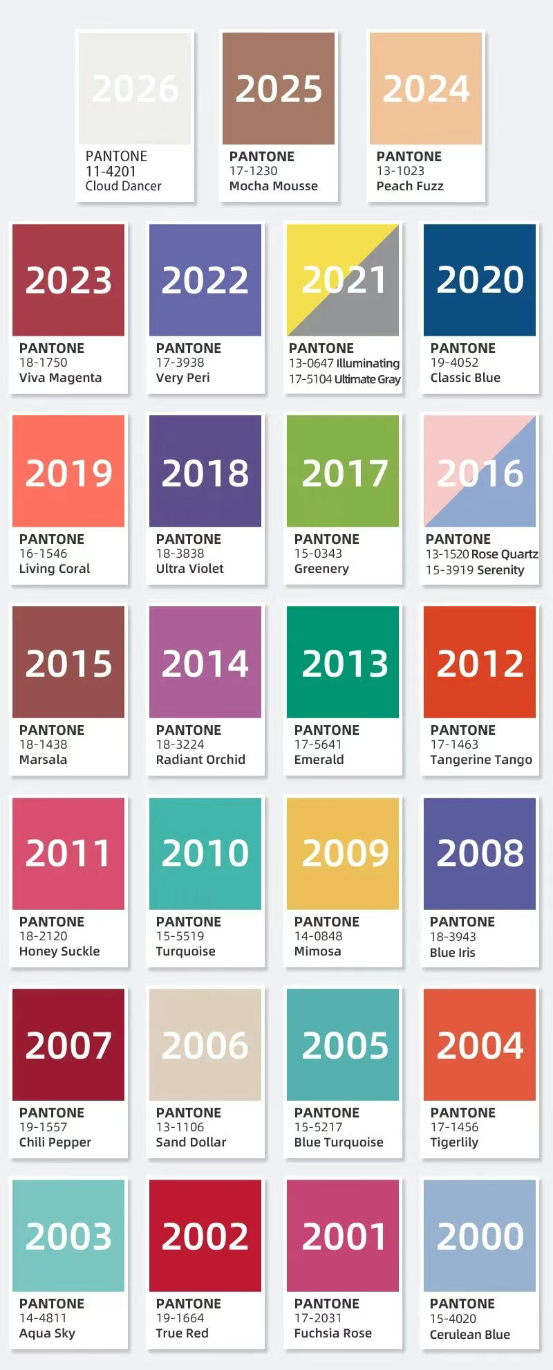 自2000年起,PANTONE每年都會(huì)從全球范圍內(nèi)篩選出一種代表色,作為該年度的流行色,這一色彩不僅在設(shè)計(jì)、時(shí)尚、家居等領(lǐng)域掀起潮流,更成為全球文化情緒與態(tài)度的直觀表達(dá)。