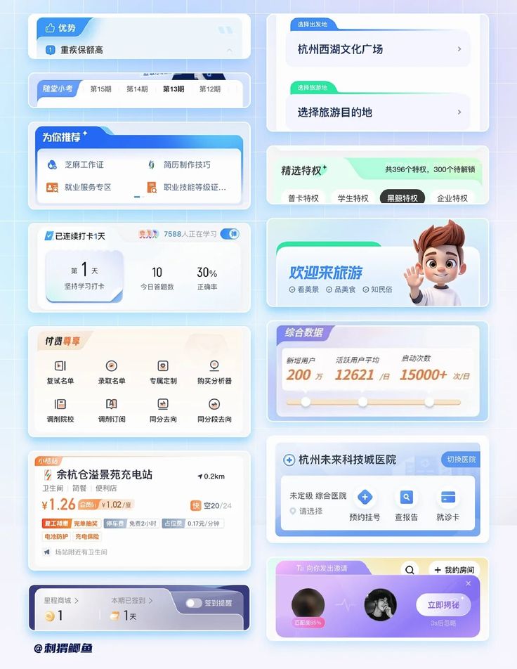 以釘釘為例,其主色調(diào)為藍(lán)色,但在 AI 相關(guān)設(shè)計(jì)中大量融入紫色調(diào):官網(wǎng)首頁(yè) banner、分類卡片、功能按鈕、UI 界面及裝飾圖形等,均采用藍(lán)色搭配淺紫、粉紫的組合,既保留了品牌的專業(yè)感,又傳遞出 “能創(chuàng)造新價(jià)值” 的工具屬性,精準(zhǔn)契合 AI 突破常規(guī)的定位。這種 “藍(lán)色穩(wěn)根基 + 紫色添新意” 的搭配,讓 AI 產(chǎn)品既不冰冷遙遠(yuǎn),又不失專業(yè)可信度。