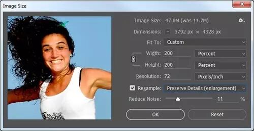 打開Photoshop,選擇“圖像>圖像大小”,設置圖像各自增大200%,勾選重新取樣,設置保留細節(jié)(擴大)。
